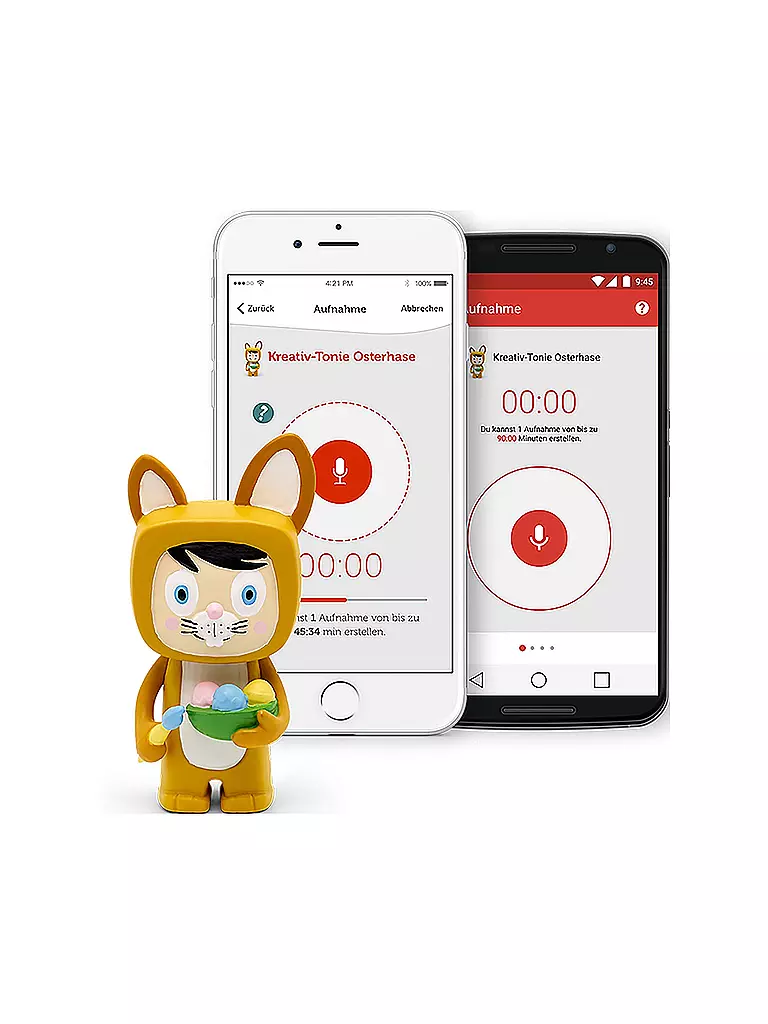 Mit der dazugehörigen, kostenlosen Smartphone-App können eigene Sprachaufnahmen aufgezeichnet und dem Kreativ-Tonie zugewiesen werden.